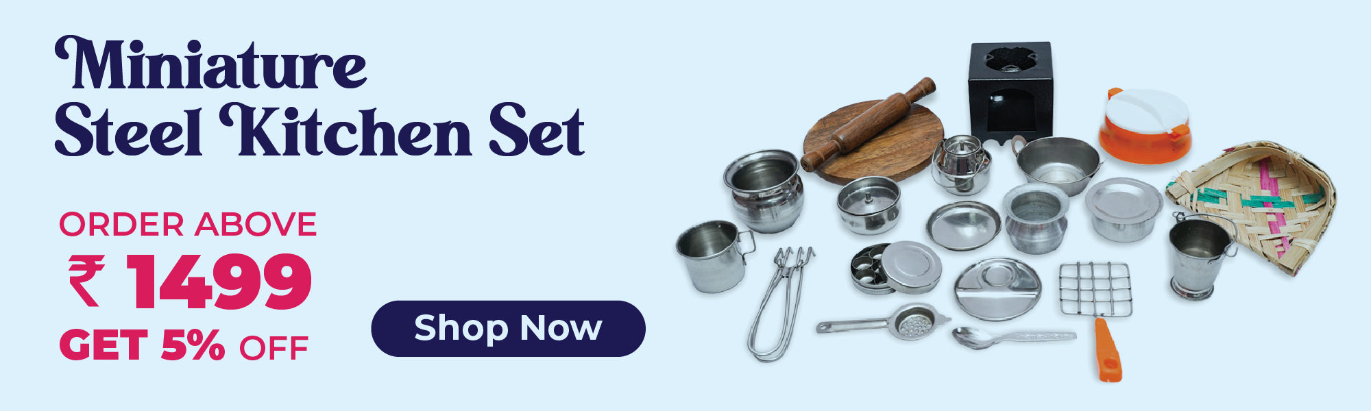 This complete set includes essential cooking and serving items, allowing kids to enjoy imaginative role-play while learning about traditional South Indian cooking activities. Made from durable steel, it adds authenticity to miniature kitchen setups and educational displays.