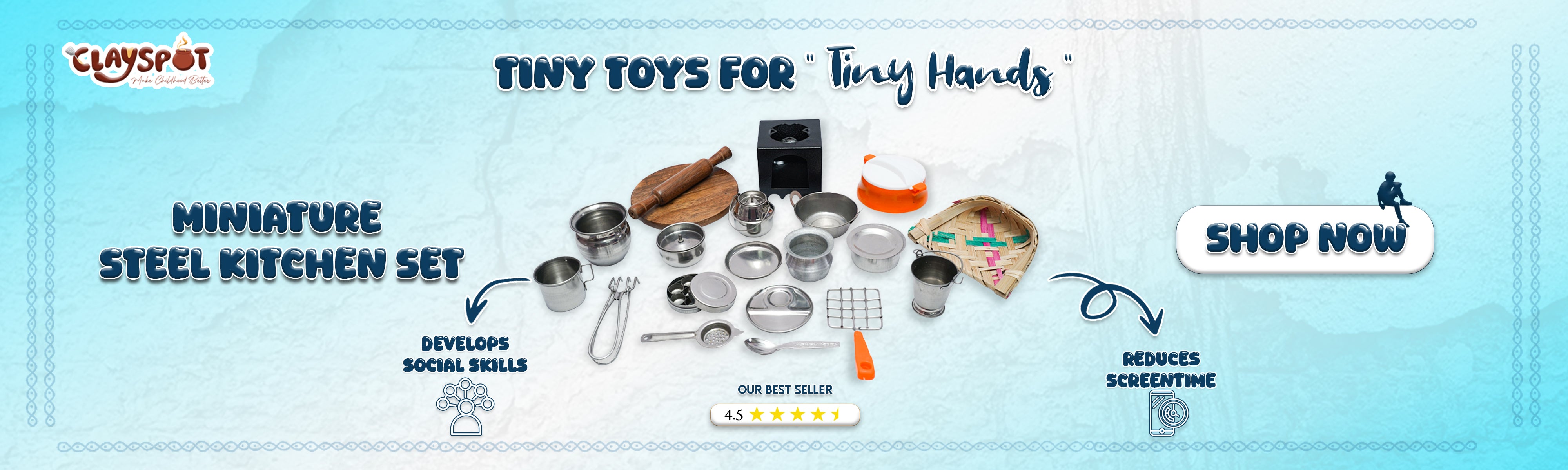 The Miniature Dosa Set is a realistic and detailed miniature kitchen accessory designed for children to simulate preparing and serving dosas. It includes a variety of utensils and cooking tools, allowing kids to engage in imaginative role-play and explore traditional South Indian cooking activities. Crafted from durable steel, this set adds authenticity to miniature kitchens, dollhouses, or educational displays.