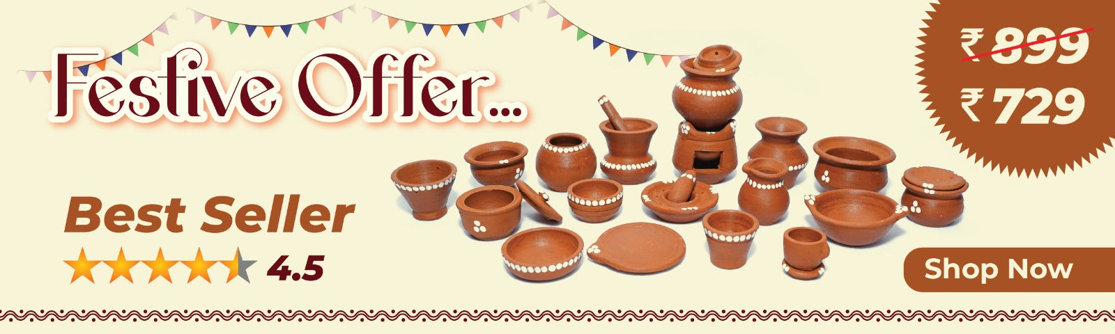 While cooking with wood fire or diya, the clay pot may turn black, this is completely normal and does not affect the quality or safety of the pot.