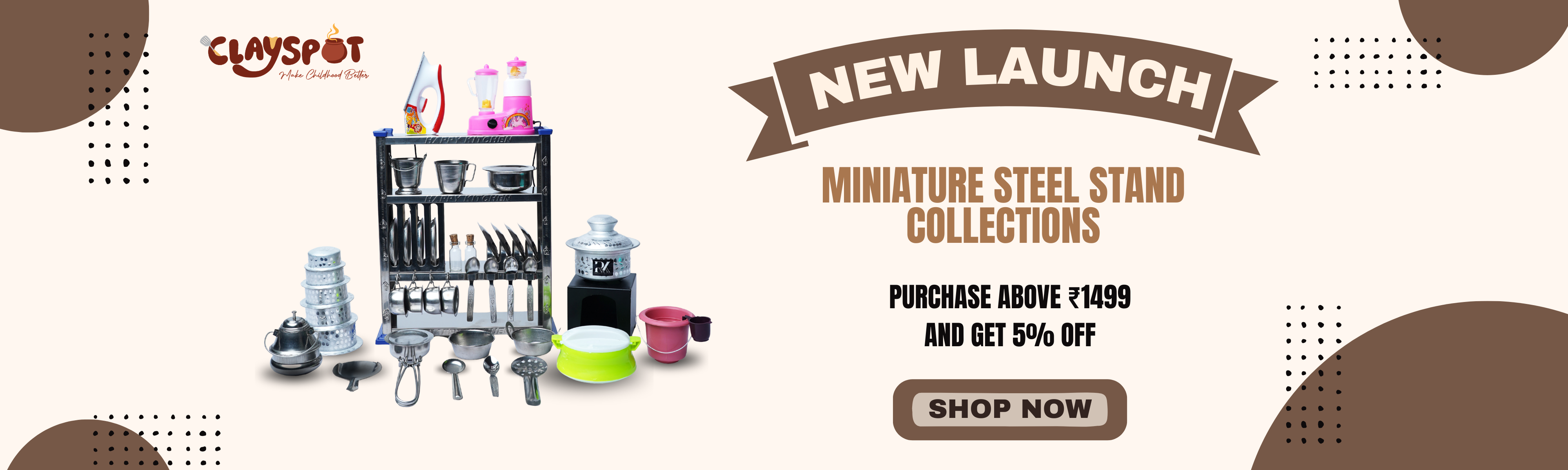 This complete set includes essential cooking and serving items, allowing kids to enjoy imaginative role-play while learning about traditional South Indian cooking activities. Made from durable steel, it adds authenticity to miniature kitchen setups and educational displays.