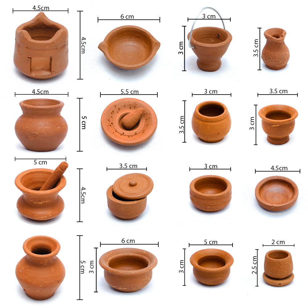Each piece reflects traditional craftsmanship, making it perfect for imaginative play, miniature cooking videos, storytelling setups, and decorative village themes. The earthy texture and natural finish add a rustic aesthetic, creating a warm and nostalgic experience.