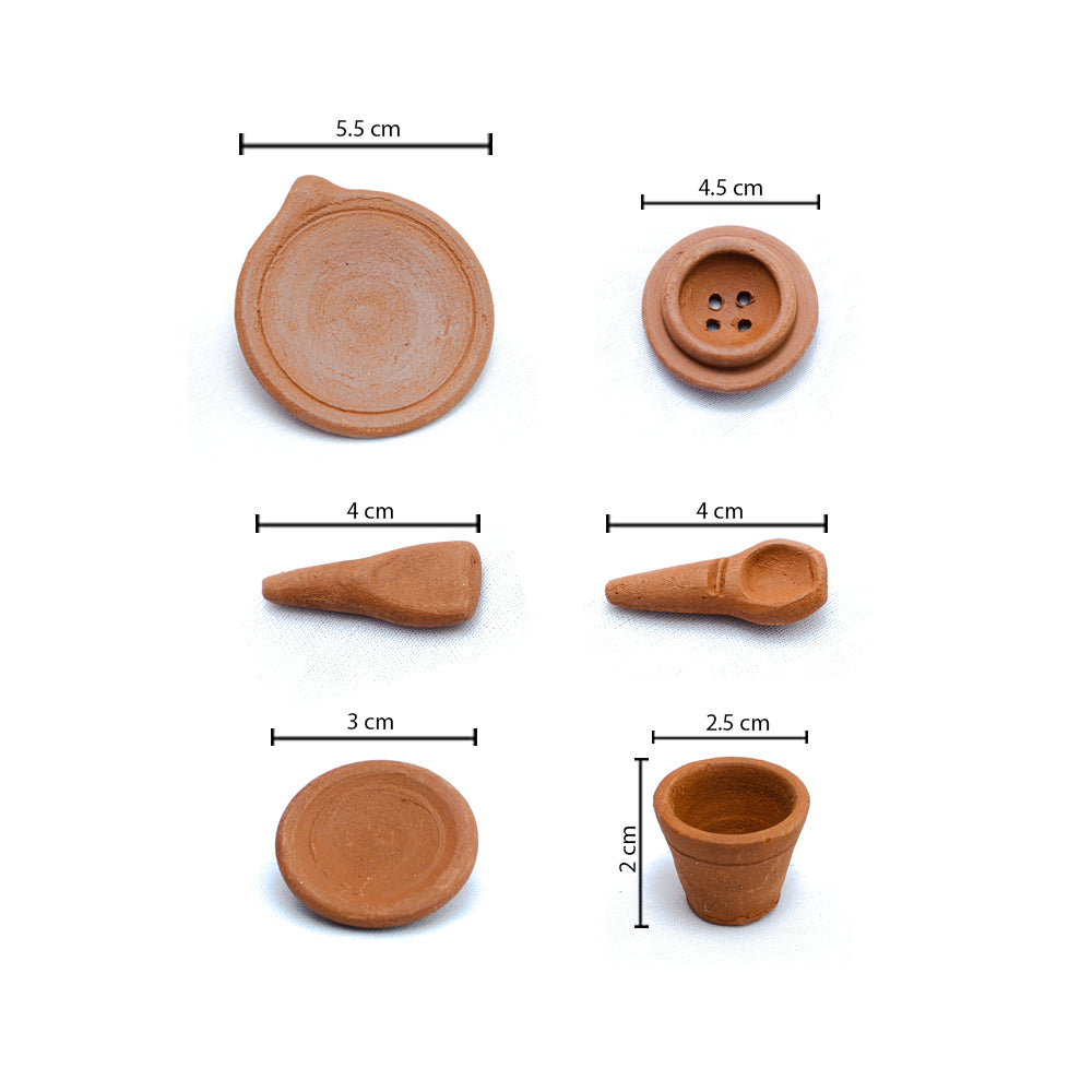 Each piece reflects traditional craftsmanship, making it perfect for imaginative play, miniature cooking videos, storytelling setups, and decorative village themes. The earthy texture and natural finish add a rustic aesthetic, creating a warm and nostalgic experience.