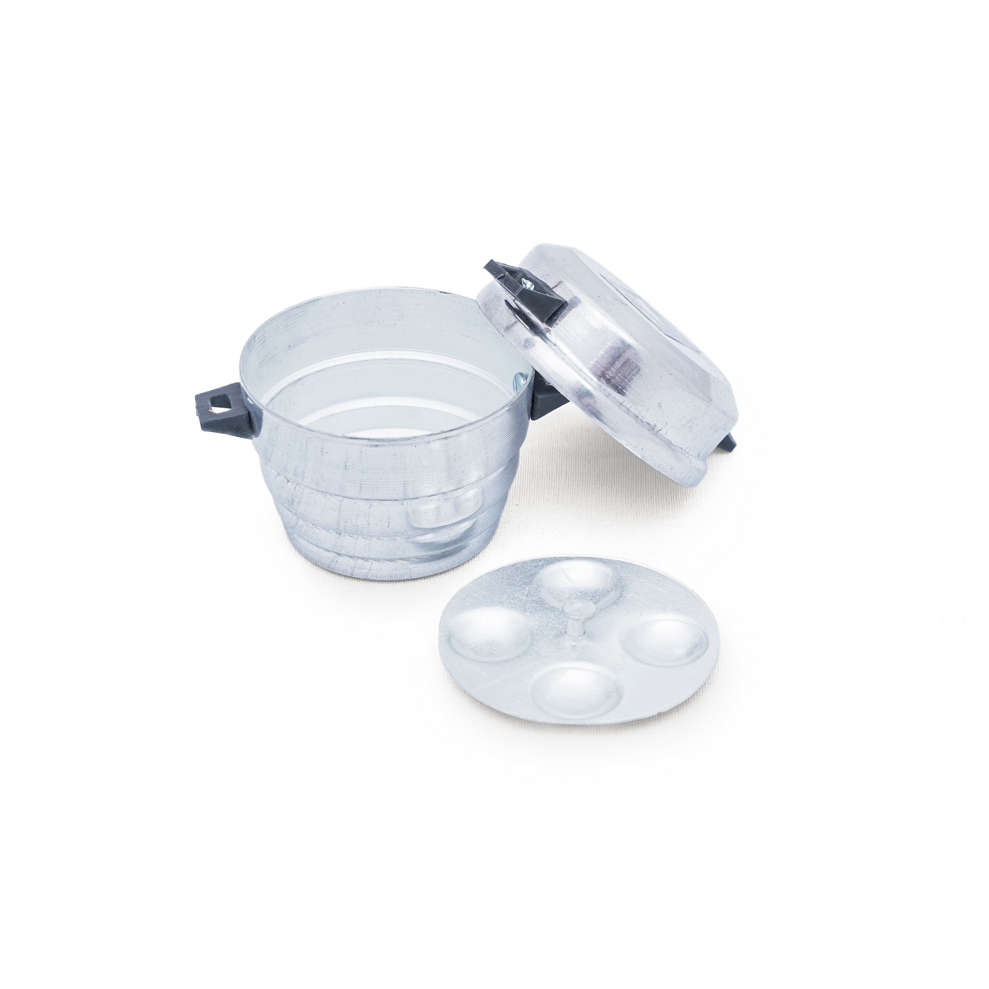The Miniature Aluminium Idly Pot is a realistic kitchen accessory designed for children’s play kitchens and miniature setups.